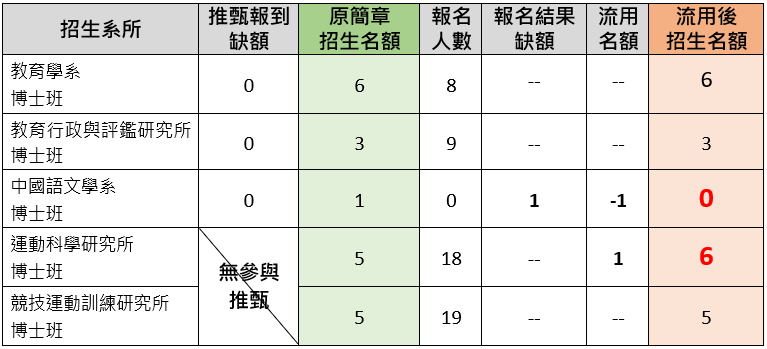 115學年度博士班考試入學招生名額流用公告: ❶依據:教育部115年1月5日臺教高(四)字第1142204136號 「大學校院博士班考試入學名額流用試辦計畫」 來函辦理。 ❷上述計畫流用規定: