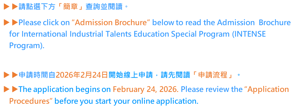 《University of Taipei》Admission Brochure for the International Industrial Talents Education Special Program (INTENSE Program) of Academic Year 2026